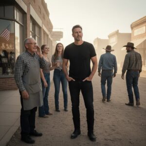 The dust took its time settling after the syndicate enforcers drove away. It hung in the dry, stagnant air of Oakhaven like a golden mist, catching the fading afternoon light. I stood perfectly still, my black boots planted firmly on the cracked asphalt. I didn’t turn around immediately. I didn’t need to. I could feel the eyes of the town burning into my back. They were watching the man in black, the silhouette that had just stepped between them and the brutal reality they had accepted as their fate.