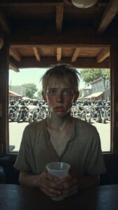 “We’re not here for a drink,” the biker replied, his voice dropping the temperature in the room by ten degrees. “You owe the kid money.”
