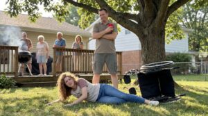Rachel Miller, a woman recovering from a spinal injury, attends a family reunion in Ohio where she feels isolated and judged. Her brother, Mark, believing she is faking her disability for attention, publicly mocks her and pushes her out of her wheelchair. Rachel falls to the ground in pain while her family, including her aunt and parents, either laugh or turn away. The traumatic scene is interrupted by the sudden arrival of Rachel’s doctor, who witnessed the assault.