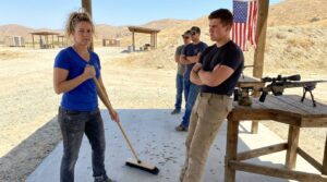 The sharp voice cut through the dry air, edged with the kind of irritation that usually comes from dehydration, the blistering heat, or a missed shot. I paused, resting one hand on the handle of the broom, and turned slowly. The man speaking to me was young, fit, and practically vibrating with testosterone. He wore tan tactical pants and a fitted t-shirt that showed off the results of too many hours in the gym and not enough in the actual field. Two other men stood behind him, arms crossed, watching the interaction with bored amusement like apex predators.