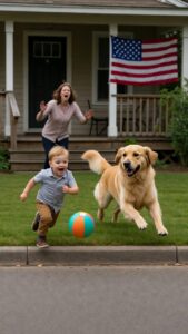 My left hand was still buried deep in the thick, golden fur of his neck. I was clutching him just as fiercely as I was clutching Noah, anchoring myself to the reality of his presence. Cooper had used his large body as a physical barricade, gently but firmly checking the toddler’s momentum and standing between the child and the street until a parent could rush out. And now, his job was done, but he wasn’t moving away. He sat solidly beside me, a majestic, heavy sentinel, his dark brown eyes calmly watching the street where the shredded remains of the beach ball lay scattered.