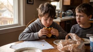 I made grilled cheese sandwiches. He ate three of them. He didn’t look up, didn’t talk, just ate with a focused intensity that told me this wasn’t just a snack—it was probably the first real meal he’d had in a while.