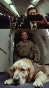 In First Class, seat 1A, a tall, devastated American Army Captain sat in rigid, tearless grief, holding a leash. At the end of it lay Major, an aging, broad-chested Golden Retriever wearing a tactical vest with a simple patch: Gold Star.